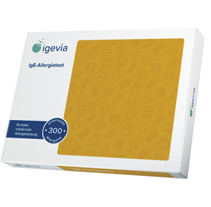 Für eine verlässliche Bestimmung von Allergie-Sensibilisierungen ist eine IgE-basierte Testung erforderlich. Der igevia-Allergietest nutzt die modernste Multiplex-Diagnostik „ALEX 3 - Allergy Xplorer“ und zeigt zusätzlich zu 300 spezifischen IgE-Werten für ein breites Spektrum an Allergenen auch den Gesamt-IgE-Wert für die generelle Allergieneigung Ihrer Patient:innen an.